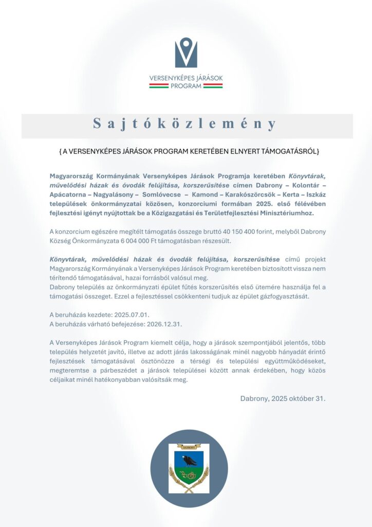versenyképes Járások program 2025 Önkormányzati épület fűtéskorszerűsítése